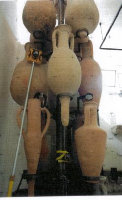 Al centro anfora betica per garum A sinistra anfora di produzione egea per vino A destra anfora troncoconica norditalica per olive