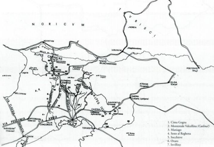 La viabilità romana nel settore nor-orientale d'Italia.