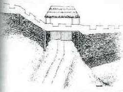 Rekonstruktion des Eingangstor der Befestigungsanlage Castelraimondo Im Sektor IV Un ingresso "a forcipe" del tipo ipotizzabile per l'insediamento di Castelraimondo Nel Settor IV