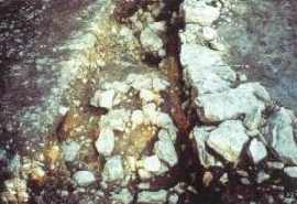 Teil des Gebäudes im Sektor V Die zwei Steinkreise des Gründungsritus Particolare dell'edificio del settore V I due cerchi di pietra del rito di fondazione.
