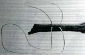 Iynx (Rassel oder Geistersucher) im Gründungsritus gefunden. Sektor V. Musikinstrument. 4. Jhdt. v. Chr. Iynx (frullo o cerca spiriti) rinvenuto nel rito di fondazione nel settore V. Strumento musicale ronzante a rotazione, appartenente alla sfera magico-rituale. IV secolo a. C. (Rosanna Ghetti, I Segreti di Castelraimondo. Forgaria 1999) |