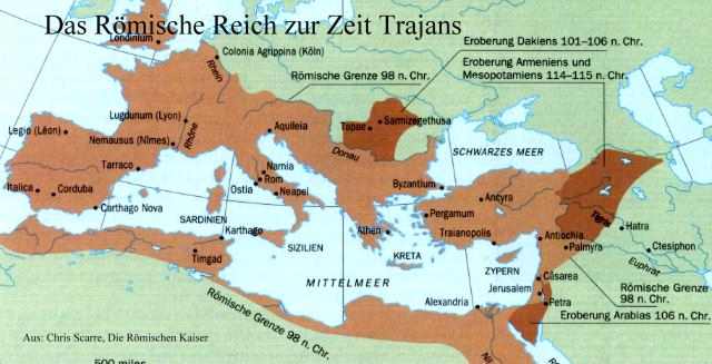 Trajan erreichte das Römische Reich seine größte Ausdehnung.