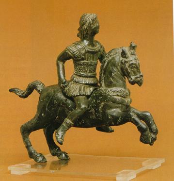 Bronze gefunden. Das Pferd ist im Hohlguß-, der Reiter im Vollgußverfahren