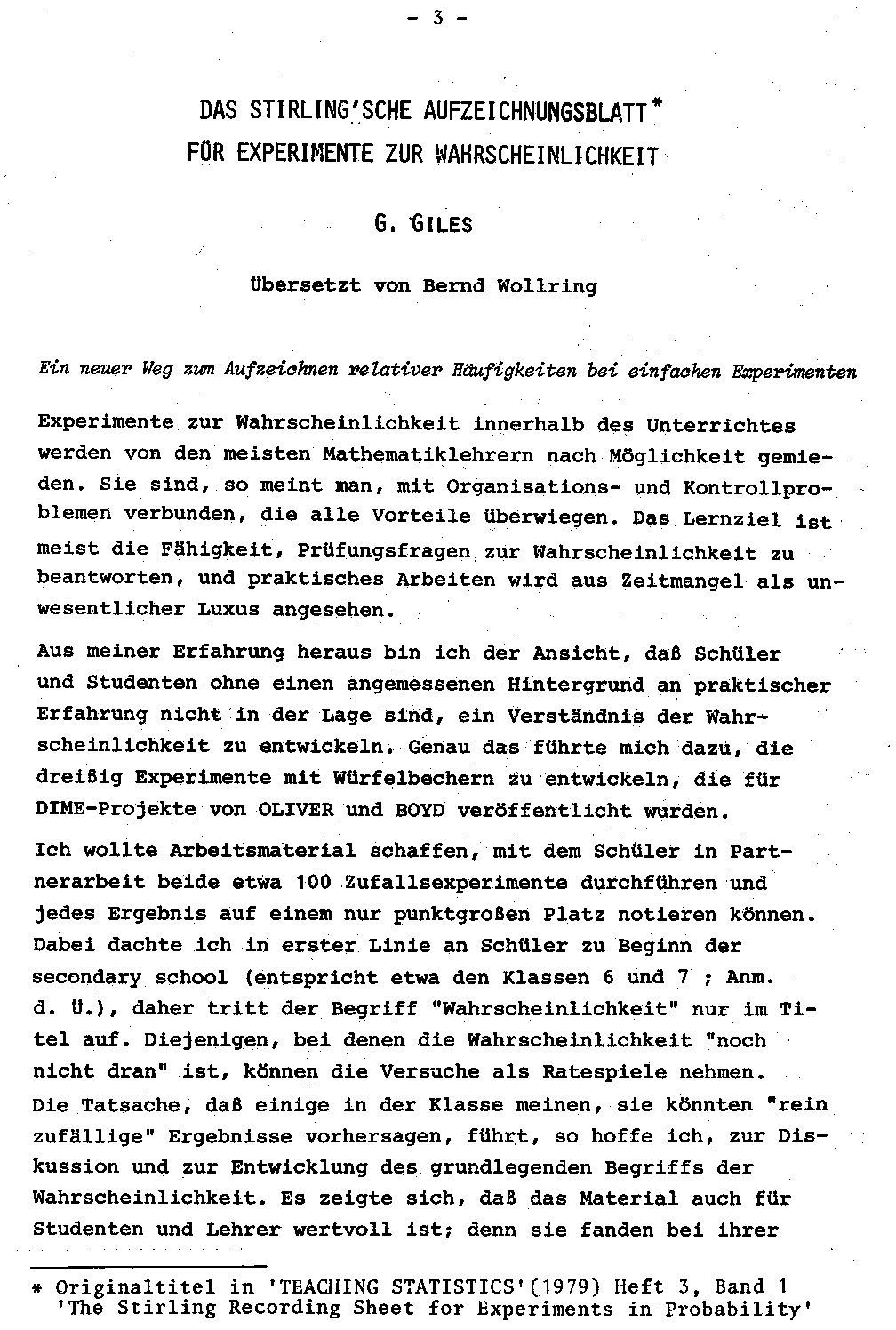 G. Giles: Das Stirling'sche Aufzeichnungsblatt für Experimente zur Wahrscheinlichkeit
