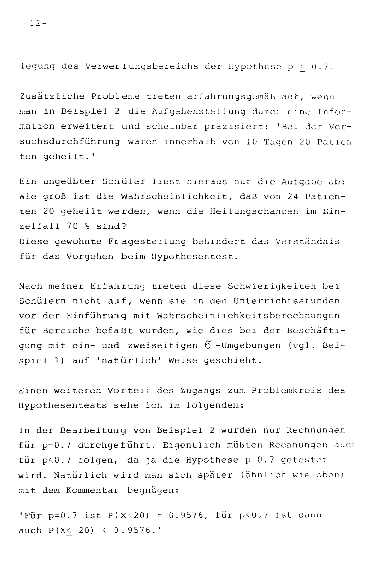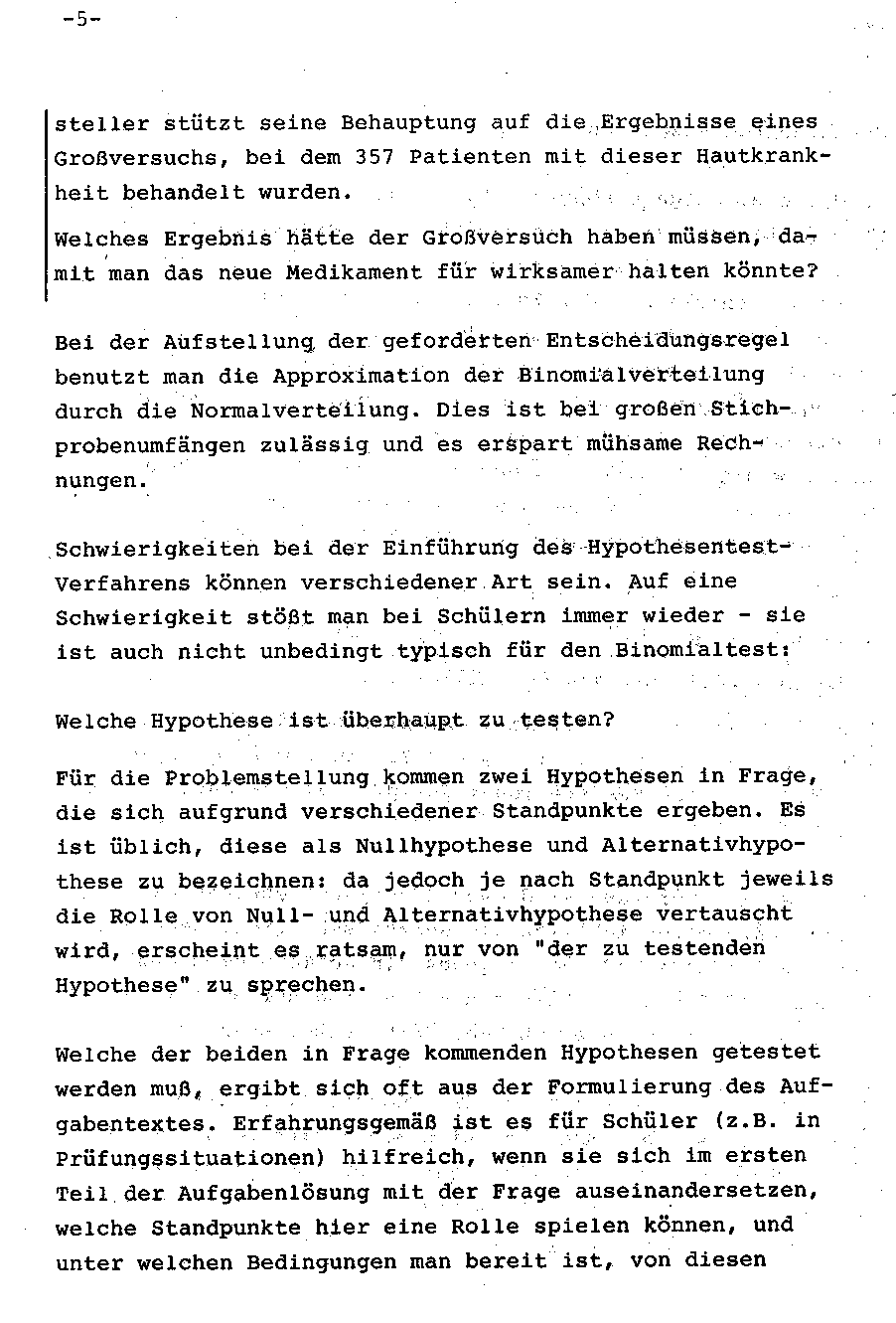 Über Probleme bei der Einführung des Testens von Hypothesen