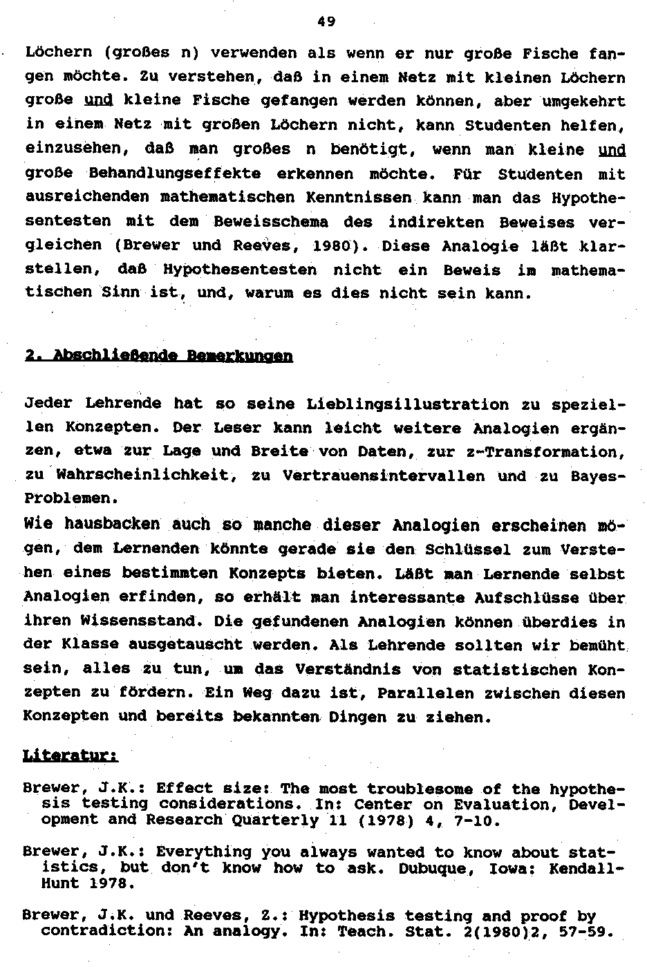 James K. Brewer: Analogien und Parabeln im Statistik-Unterricht